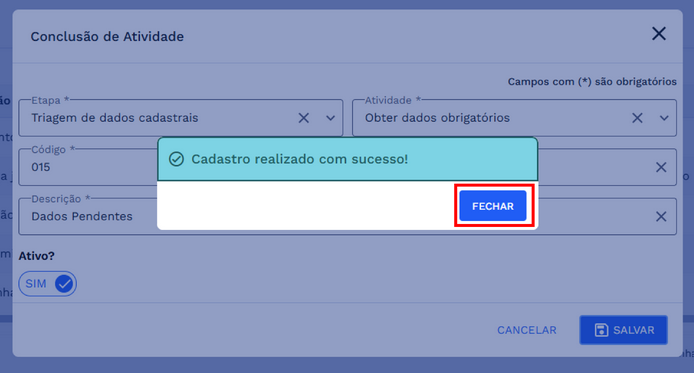 # CADASTRAR CONCLUSÃO DE ATIVIDADE